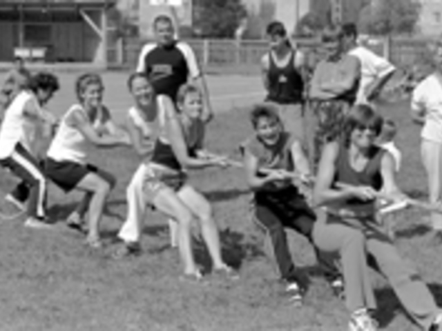 Gundega Romanauska: "Mani bērni ir aktīvi sportisti. Arī pašai patīk sportot. Galvenais nav augsti rezultāti, bet piedalīšanās. Uzzinājām, ka sporta svētkos būs sacensības komandām un izlēmām izveidot sieviešu komandu. Tagad vilksim virvi."