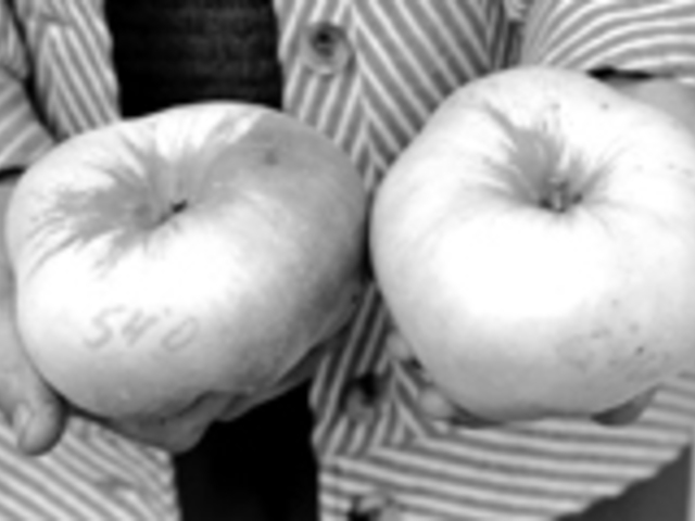 Tiesa, patlaban gan var vienīgi priecāties par augļu skaistumu un lielumu, ne tik daudz par garšu. Āboli vēl ir cieti un skābi, jo šī ir ziemas ābolu šķirne un augļi kļūst garšīgi saldskābi tikai ap gadu miju.